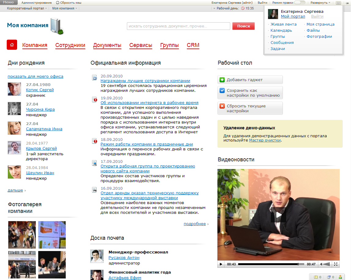 Решение предлагает весь спектр возможностей продукта «1С-Битрикс: Корпоративный портал» для организации и ее сотрудников:- HR-портал с представление организации, сотрудников;