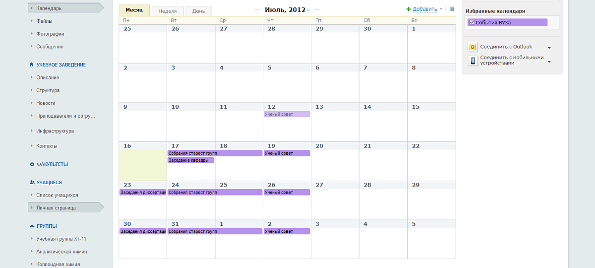 - Получить подробную информацию кафедры, факультета (новости, документы, календари событий);