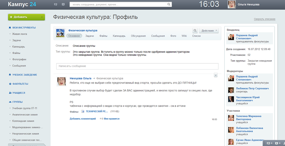 - Дать задание всей группе или отдельным участникам по предмету, получить результаты, дать комментарии;