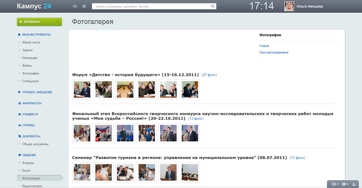 - Создавать отдельные разделы портала по факультетам/кафедрам, делегировать права на управление ими и размещение информации